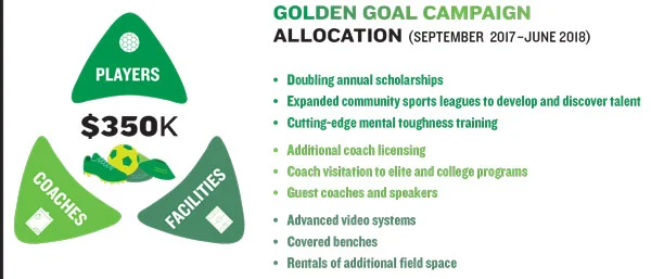 Golden Goal is an annual campaign to raise $350,000 to provide operational support to forward AGSC’s mission. AGSC is committed to becoming NYC’s leading soccer club that is recognized as an elite program regionally and nationally. Why is this campaign important?