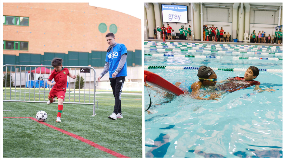 Big Swim Big Kick® was back in 2022 after a two-year hiatus – and bigger than ever! Asphalt Green hosted our signature annual event at our Upper East Side campus, and, for the first time, the events took place over two days. Big Kick kicked off on April 29 and Big Swim went swimmingly on April 30. Hundreds of kids ages 6 to 11 played soccer-themed games on our athletic field and experienced the thrill of racing in an Olympic-size pool for a 25-yard swim meet.