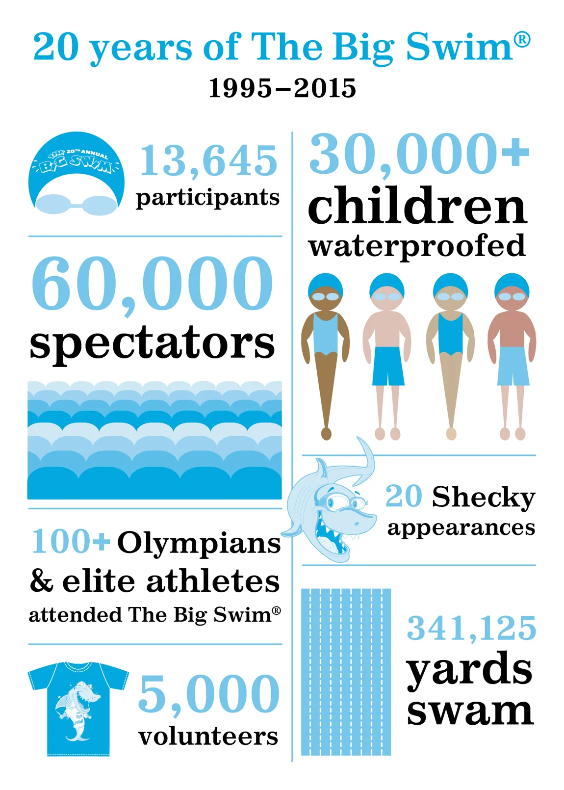 The Big Swim has grown tremendously in 20 years, and because of your support, we’ve been able to continue to provide and expand our community programs and learn-to-swim Waterproofing program. Catch a glimpse of what The Big Swim has accomplished in its first 20 years. Here’s to 20 more!