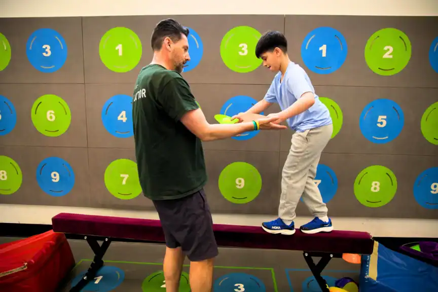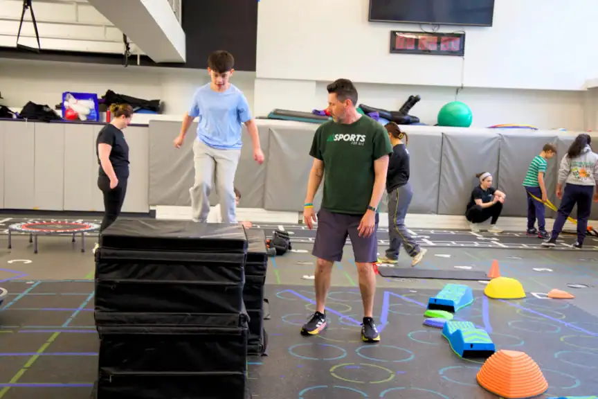 Expert instructors lead participants through guided activities that build coordination, balance, strength, and motor planning through playground-based movements like climbing, swinging, balancing, and navigating obstacles. Sessions also feature common playground and recess games that teach students patience, communication, and social cooperation.