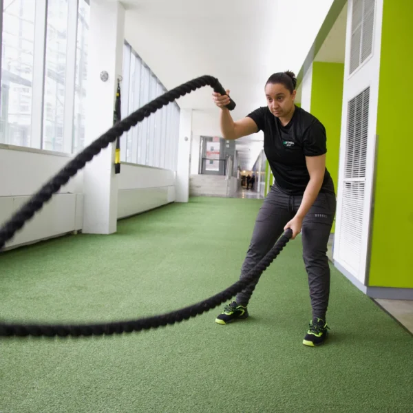 We’re of course talking about the battle ropes, a tool we use at Asphalt Green Fitness every day. Battle ropes are an effective training tool for strength and conditioning. But with no machinery or instructions, trying the battle ropes isn’t straightforward for those just starting out.
