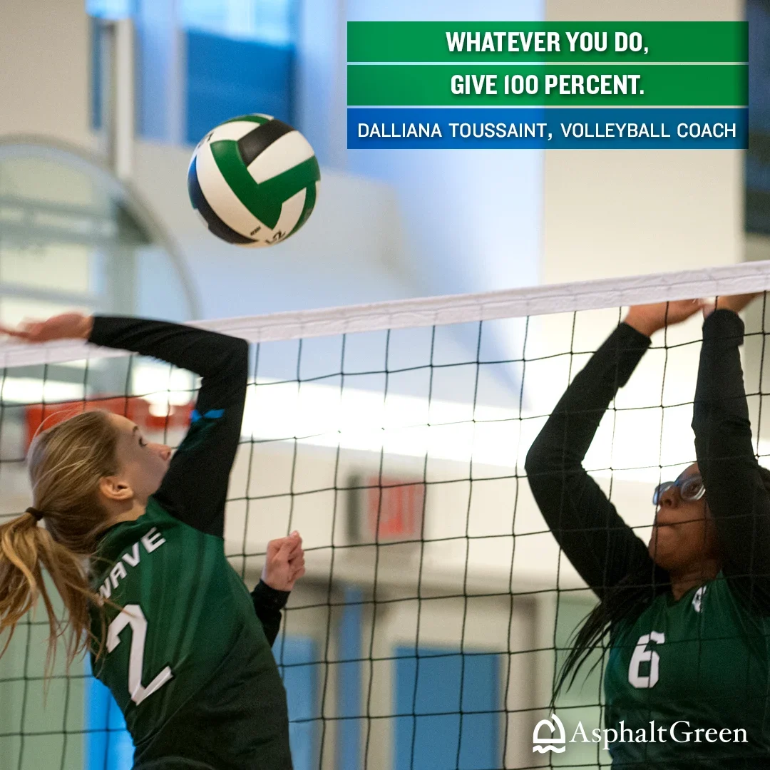 Asphalt Green Volleyball includes a variety of classes, clinics, and our Asphalt Green Volleyball Club — a competitive team for girls ages 12-17 — helping athletes of all skill levels develop a passion for the game.